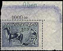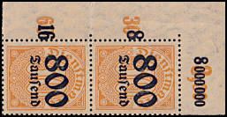 Aufdrucknennwert auf einem Bogenrand: Kennzeichnung auf einem Bogenrand um den schlecht sichtbaren Nennwert des Aufdrucks hervorzuheben |