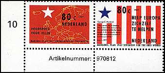 6-farbige Briefmarken die von 6 Platten gedruckt wurden erkennbar an den 6 Plattennummern auf dem Bogenrand |