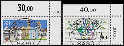 Bogenfelder mit Stempelfragmente können nicht verkauft werden und der Bogenpreis wird entsprechend reduziert |