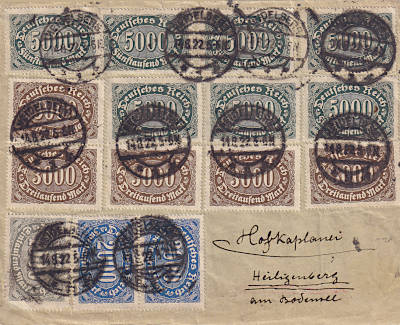 Kind Mixed Franking: postal shipment franked with multiple different long therm and commemorative stamps |