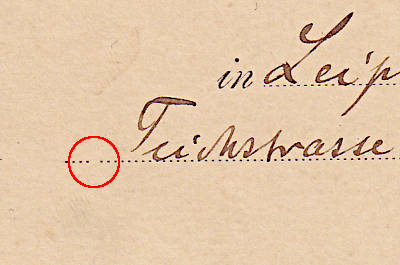 Dot gap: missing dot in a adress line in a postal stationary design print to prevent forgeries |