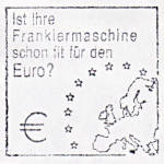 Firmenwerbungeinsatzstück: Teil eines Maschinenstempels der Reklame für eine private Firma bzw. deren Veranstaltung macht |
