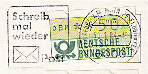 Eigenwerbungeinsatzstück: Teil eines Maschinenstempels der Reklame für Dienst-leistungen der Post macht |