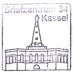 Briefzentrumeinsatzstück: Teil eines Maschinenstempels der z. B. Bauwerke aus der Region des Briefzentrums zeigt |