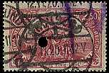 Punching Cancellation: additional marking of a postage stamp with a hole to prevent it from being used again |