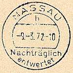 Subsequent Cancellation: postage stamp that was not cancelled immediately after delivery but only later |