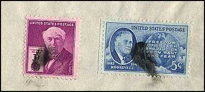 Cut Cancellation: additional marking of a postage stamp by a cut to prevent it from being used again |