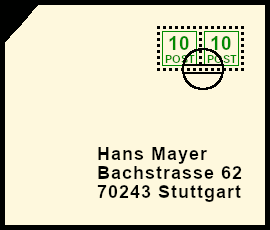 Supplemented Postal Marking: original postal shipment with deceitful bogus postal marking |