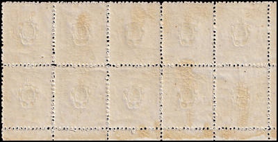 schwefelsäurehaltige Gummierung: Gummierung die Spuren von Schwefelsäure enthält die das Papier angreift und braun verfärbt |