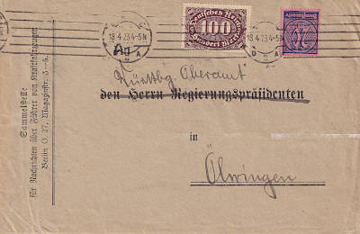 Inlandsbrief frankiert mit einer Freimarke (links) und einer Dienstmarke (rechts) |