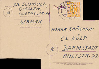 beschnittene Ganzsache: Ganzsache bei der als beabsichtigte Ausführung der Wert-stempel (und Propagandavordruck) ausge-schnitten wurde um den Rest als Formblatt zu verwenden
