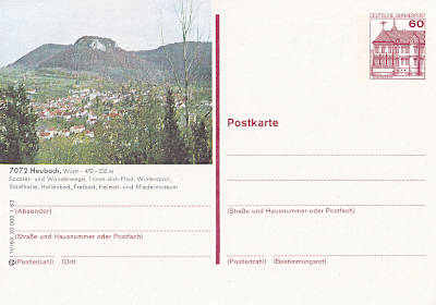 Bildganzsache: amtliche Ganzsache mit vorderseitiger Werbung für eine Stadt oder eine touristische Sehenswürdigkeit