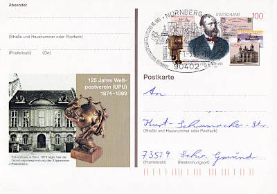 amtliche Ganzsache mit privatem Zu-druck: von einer Postverwaltung veraus-gabte Ganzsache die nachträglich von einer Privatperson mit einem Zudruck versehen wurde