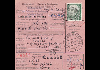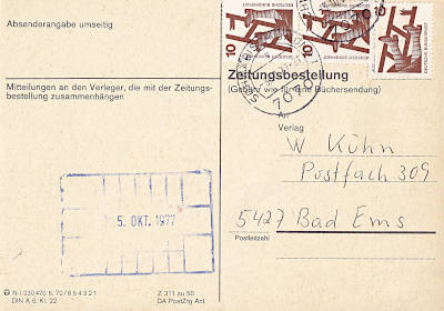 Hinweisvermerk Wirtschaftsdruck-sache: Vermerk der auf eine gebühren-begünstigte Grundsendung hinweist die Drucksachen, Geschäftspapiere und Waren-proben kombiniert enthalten konnte (alter-tümliche Bezeichnung: Mischsendung) |