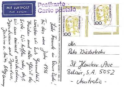 Hinweisvermerk Schülerbrief: Vermerk der auf eine gebührenbegünstigte Grund-sendung für den Versand von Brieffreund-schaftsbriefen zwischen Schülern hinweist die im internationalen Verkehr mit Luftpost zum Landtarif befördert wurden |