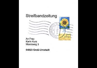 Hinweisvermerk Streifbandzeitung: Vermerk der auf eine gebührenbegünstigte Grundsendung hinweist deren Inhalt nur durch mechanisch oder fotomechanisch Vervielfältigung (z. B. Druck) hergestellt wurde (altertümliche Bezeichnung: Druck-sache zu ermässigter Gebühr, Zeitungsdruck-sache) |