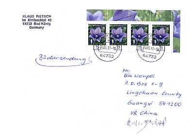 Hinweisvermerk Büchersendung: Ver-merk der auf eine gebührenbegünstigte Grundsendung für den Versand von Druck-werken hinweist (z. B. Bücher, Noten) |