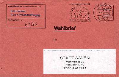 Hinweisvermerk Wahlbrief: Vermerk der auf eine meistens gebührenfreie Postsend-ung für die Rücksendung der ausgefüllten Briefwahlunterlagen hinweist |