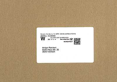 Hinweisvermerk Warenpost mit Zustell-Nachweis: Vermerk der auf eine Sonder-leistung für Warensendungen hinweist bei der der Zusteller das Einlegen in den Brief-kasten des Empfängers dokumentiert |