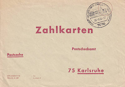 Hinweisvermerk Zahlkarte: Vermerk der auf eine Geldübermittlung mit Bareinzahlung am Postschalter und Gutschrift auf ein Post-scheckkonto hinweist (altertümliche Be-zeichnung: Postüberweisung) |