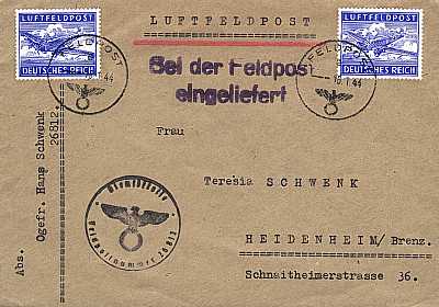 Hinweisvermerk Luftfeldpost: Vermerk der auf eine gebührenfreie Zusatzleistung hinweist bei der die Beförderung einer Feld-postsendung mit einem Luftfahrzeug erfolgt |