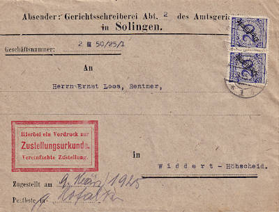 Hinweisvermerk Zustellungsurkunde: Vermerk der auf eine Sonderleistung hinweist bei der einer Postsendung ein Formblatt beigefügt wird auf dem der Zusteller die förmliche Zustellung dokumentiert und dieses anschließend an den Absender zurückschickt (in Deutschland bis 31.07.1964 Zusatzleistung) |
