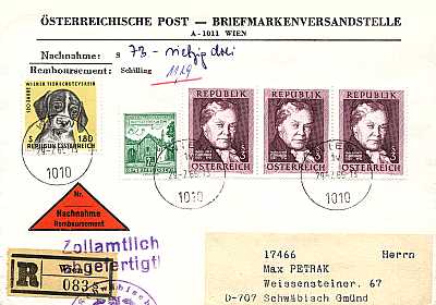 Hinweisvermerk Einzuziehendes Ent-gelt: Vermerk auf einer Postsendungen bei der der Empfänger vor der Aushändigung noch Zollgebühren bezahlen darf |