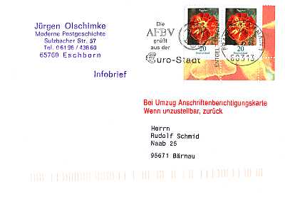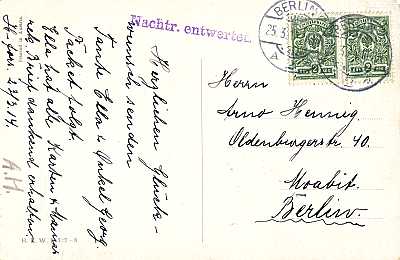 Hinweisvermerk Nachträglich entwert-et: Vermerk auf einer Postsendung bei der die Frankatur (teilweise) nicht unmittelbar nach der Einlieferung sondern erst später entwertet wurde |