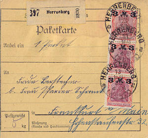 Distance Postage Fee: postage fee for postal shipments in defined weight categories taking distance into account (e.g. domestic parcel < 75 km: 6 mark; > 75 km: 9 mark) |