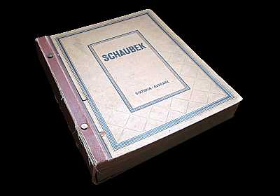 Einsteckalbum: Album mit Kartonblätter mit reihenweise waagrecht aufgeklebten durchsichtigen Pergamin- oder Zellophan-streifen für die geordneten Aufnahme von Briefmarken |