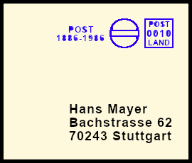 kräftiger Freistempel: Postsendung die durch eine Zufälligkeit mit einem klaren jedoch farblich zu stark geratenem Freistempel versehen wurde |