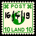 Diagonal Pencancellation: postage stamp with 45 degrees rotated horizontal pencancellation |