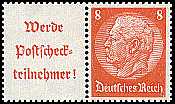 Zusammendruck Briefmarkenbilddruck mit Reklamefeld: Einheit bei der als beab-sichtigte Ausführung ein Bogenfeld mit einem Briefmarkenbilddruck und das andere mit Werbung bedruckt wurde |