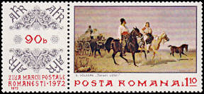 Zusammendruck mit Briefmarkenauf-druck über zwei Briefmarken: Zweier-streifen der mit einem gemeinsamen Brief-markenaufdruck versehen wurde |