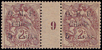 5 Piaster auf 40 Centimes rot/ blau |