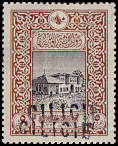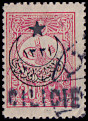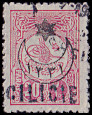 Briefmarke mit Aufdruck eines fünfstrahligen Sterns und Halbmond mit Jahreszahl "1332"