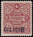 5 Piaster auf 2 Para grünblau, kopfstehender Aufdruck
