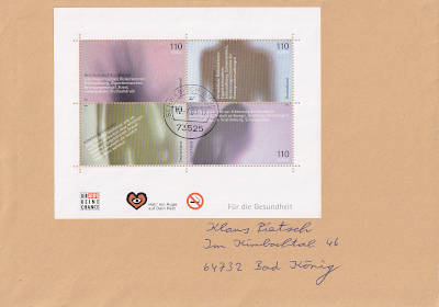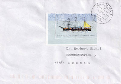 Inlandsbrief (1-20 g) vom 08.11.2001 (12. Periode) frankiert mit einer Briefmarke a 1,10 Mark (=1,10 Mark) |