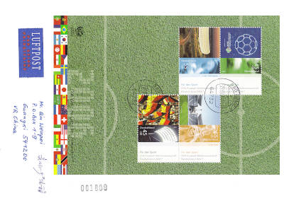 Auslandsbrief mit Luftpost (1-50 g) vom 21.07.2006 (4. Periode) frankiert mit einem Block a 3 € (=3 €) |