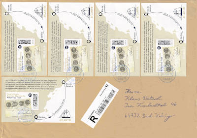 Inlandsbrief mit Übergabe-Einschreiben (51-500 g) vom 22.08.2024 (11. Periode) frankiert mit 5 Blocks a 0,85 € (=4,25 €, 1,60 Brief 2,65 Übergabe-Einschreiben) |