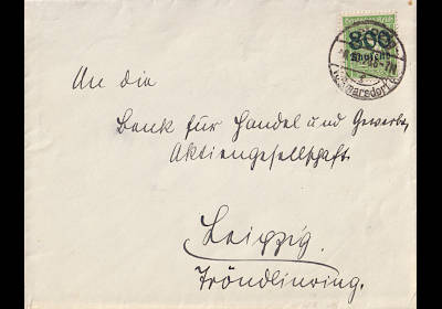 Ortsbrief (1-20 g) vom 06.10.1923 (19. Periode) frankiert mit einer Marke a 800 000 Mark auf 5 Pfennig (=800 000 Mark)