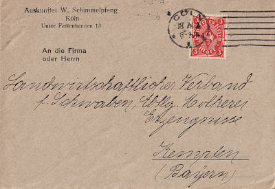 Inlandsbrief (1-20 g) vom 18.07.1922 (8. Periode) frankiert mit einer Marke a 3 Mark (=3 Mark) |