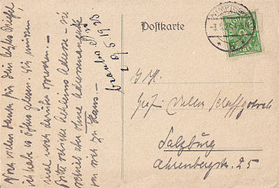 Auslandspostkarte vom 03.05.1923 (13. Periode) frankiert mit einer Marke a 40 Mark (=40 Mark); nach Österreich galt der Inlandstarif |