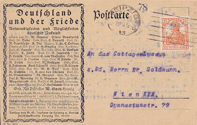 Foreign postcard from 10.05.1918 franked with one stamp a 7½ Pfennig (=7½ Pfennig)
