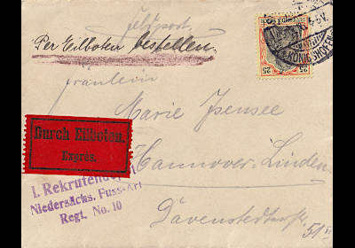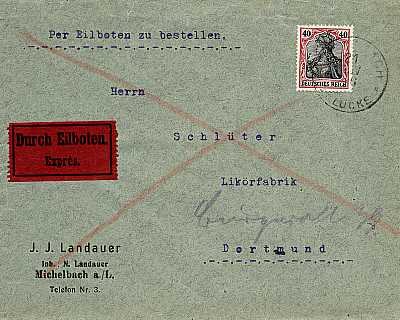 Inland cover with special delivery (1-20 g) from 21.11.1916 franked with one stamp a 40 Pfennig (=40 Pfennig, 15 cover 25 special delivery) |