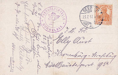 Inland postcard from 23.07.1917 franked with one stamp a 7½ Pfennig (=7½ Pfennig)