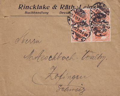 Foreign cover (1-20 g) from 23.03.1920 franked with 4 stamps a 7½ Pfennig(=30 Pfennig)