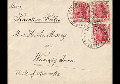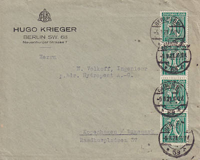 Foreign cover (1-20 g) from 09.05.1921 franked with 3 stamps a 40 Pfennig (=1,20 Mark) |