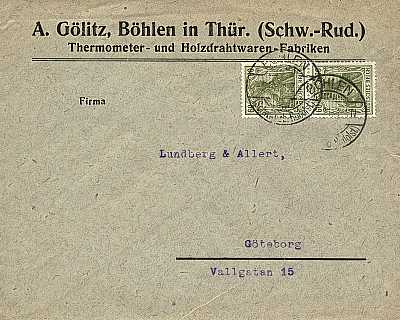 Foreign cover (1-20 g) from 05.11.1921 franked with 2 stamps a 60 Pfennig (=1,20 Mark) |