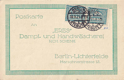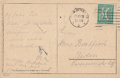 Ortspostkarte vom 10.10.1921 frankiert mit einer Marke a 30 Pfennig (=30 Pfennig)
